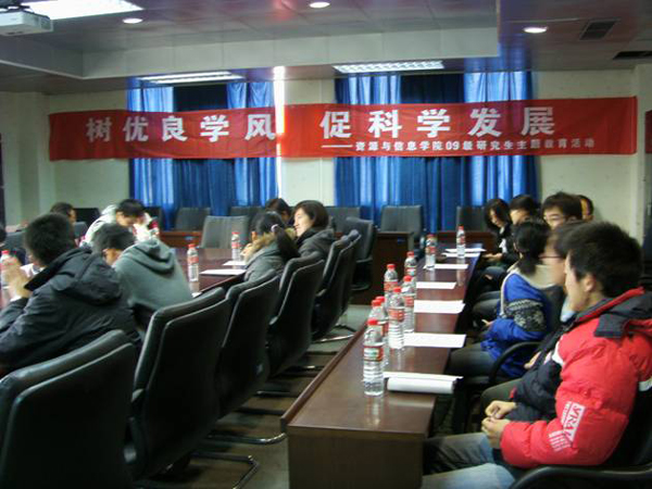 12月6日下午2:30,資源與信息學院在新綜合樓報告廳舉辦了以“樹優(yōu)良學風,促科學發(fā)展”為主題的研09學風建設研討會。此次研討會由資源與信息學院分團委主辦,院研究生會主持召開, 09級研究生各班學生代表參加。