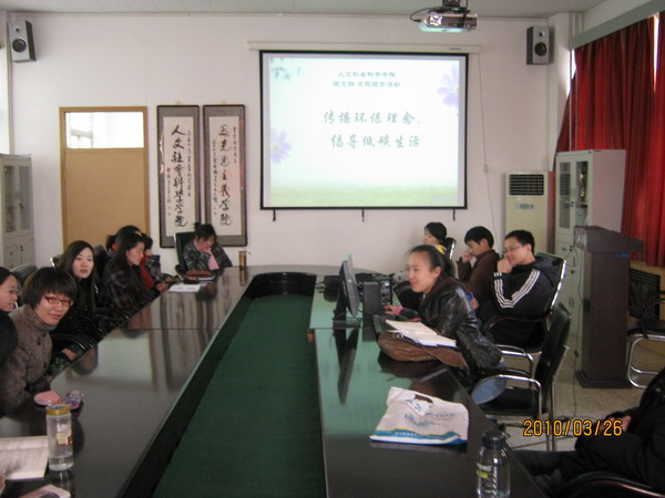 活動在2009年哥本哈根氣候大會的開幕宣傳片及其氣候宣傳片的視頻中開始。會議首先向大家介紹我校“今天你低碳了嗎?”系列活動的內容及相關要求,同時,通過圖片、實物等向廣大團員展示了當前我國及校園周邊的環境現狀,向大家解釋以“何為低碳”以及低碳生活的理念。與會成員,也通過相關視頻了解到了馬爾代夫以及其他近海國家、島嶼因氣候變暖導致海平面上升而面臨的消失問題。