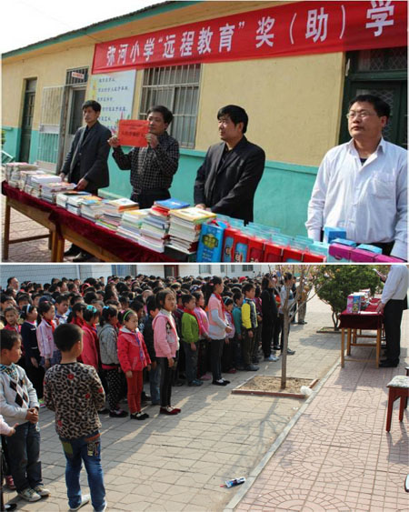 4月25日,支部將籌得捐款以及書籍、書包、水杯、筆袋、雨傘等運(yùn)至山東省青州市彌河小學(xué)。該校特舉行了“遠(yuǎn)程教育獎(助)學(xué)金啟動儀式”,并專門制訂了《彌河小學(xué)獎學(xué)金發(fā)放辦法》和《彌河小學(xué)助學(xué)金發(fā)放辦法》用于獎勵品學(xué)兼優(yōu)的同學(xué)和家庭貧困的同學(xué)。