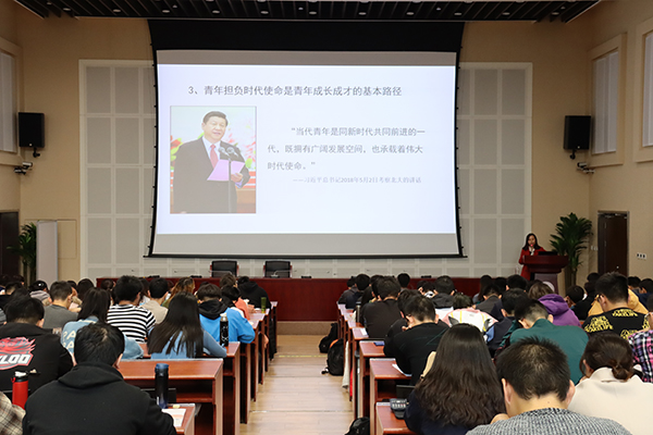 袁芳副教授結合當今國內外形勢,著重從“青年為什么要擔當使命”“青年要擔當什么樣的時代使命”以及“青年如何擔當使命”三個方面,深入闡述了對青年使命擔當的理解。她以“高鐵”作比喻,勉勵石大青年發(fā)揚奮斗精神,勇?lián)褡鍙团d大任,努力充當每節(jié)車廂的動力,培養(yǎng)執(zhí)著的信念、優(yōu)良的品質、豐富的知識和過硬的本領,不斷為實現(xiàn)中國夢添磚加瓦。