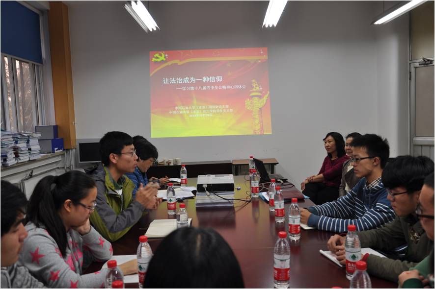 10月29日,石大國資處黨支部與化學工程學院本2013黨支部在辦公樓B座102會議室開展了題為“讓法治成為一種信仰——學習十八屆四中全會精神體會”的“一對一”黨支部活動。機關黨總支負責人以及來自國資處黨支部和化學工程學院本2013學生支部的黨員、入黨積極分子約30人參加了活動。