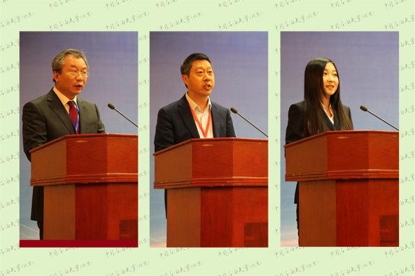 中國(guó)石油大學(xué)(北京)地球科學(xué)學(xué)院黨委書(shū)記王貴文向與會(huì)嘉賓介紹了大賽的籌備情況,就大賽的組織機(jī)構(gòu)、賽制及初賽評(píng)審情況作了詳細(xì)介紹。東北石油大學(xué)地球科學(xué)學(xué)院副院長(zhǎng)張?jiān)品宕韰①悊挝话l(fā)言,向主辦方中國(guó)石油大學(xué)(北京)為促成本次大賽的舉行表示衷心的感謝,并預(yù)祝本次大賽圓滿(mǎn)成功。中國(guó)石油大學(xué)(北京)碩士研究生楊雯澤代表參賽選手發(fā)言,號(hào)召參賽選手遵守大賽規(guī)則,賽出水平、賽出友誼、賽出風(fēng)格,展示油氣地質(zhì)領(lǐng)域人才的專(zhuān)業(yè)技能和精神風(fēng)貌。
