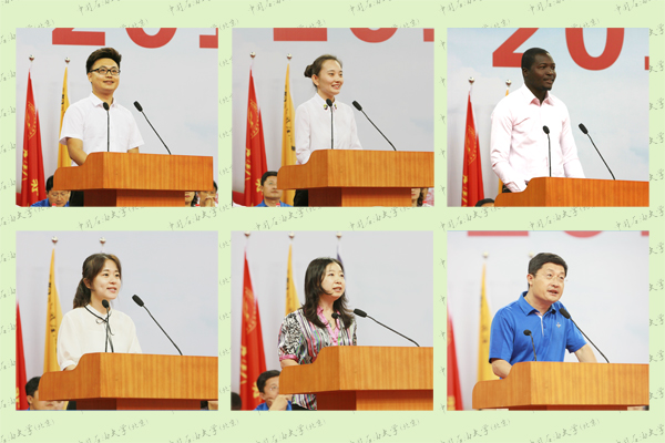 畢業(yè)本科生代表石油工程學院吳貴倫、畢業(yè)研究生代表工商管理學院袁省之、畢業(yè)留學生代表乍得籍留學生帕帝楠分別發(fā)言,他們深情講述了自己對石大的熱愛與感激,表達了對未來的美好期許;在校學生代表外國語學院馬甜甜感謝學長學姐的幫助與支持,祝福學長學姐未來一帆風順、前程似錦;教師代表工商管理學院趙曉麗表達了對畢業(yè)生濃濃的牽掛和不舍,送上了深情的祝福和囑托;校友代表郭海波分享了自己的勵志創(chuàng)業(yè)故事,寄語畢業(yè)生要趁著如詩年華,趁著滿腹學識,趁著對未來的美好期望而努力奮斗。
