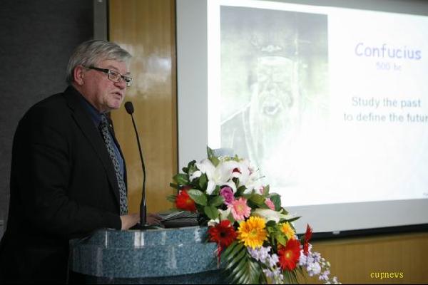 蔣慶哲書記在致詞中說,目前世界許多國家和組織都對石油峰值開展了研究,國內的一些研究機構和我們學校的老師也對石油峰值研究作了大量工作。這次會議邀請了不少國內外研究石油峰值的專家,他希望大家能深入的交流和探討。學校也將對石油峰值研究給予更多的關注和支持。