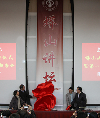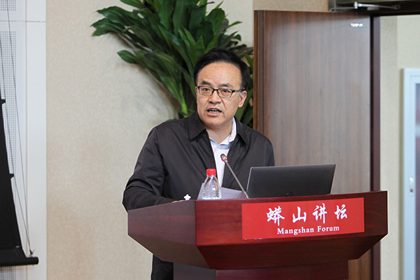 張來斌在揭牌儀式上致辭。他表示,為進一步貫徹落實國家創新發展戰略,深入開展學術交流活動,更好地強化創新學術氛圍,激發科研創新活力,提高學校學術影響力,促進學校“雙一流”學科建設和學術水平不斷提高,學校于2017年底提出設立高端學術講壇,經過廣泛征集定名為“蟒山講壇”。“蟒山講壇”以“創新學術、引領未來”為宗旨,將通過邀請國內外知名專家學者來校進行學術講座,進一步營造良好的學術氛圍,開拓學術視野,啟迪學術思想,更好地促進學校學術水平和創新能力的快速提升。他強調,“蟒山講壇”開講也標志著學校65周年校慶學術系列活動正式拉開帷幕。