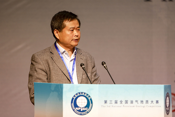 韓尚峰致辭并宣布大賽開(kāi)幕。他表示,石大落實(shí)立德樹(shù)人根本任務(wù),深入推進(jìn)“雙一流”建設(shè),通過(guò)創(chuàng)辦各類學(xué)科競(jìng)賽形成了“學(xué)以賽用,賽以促研”的人才培養(yǎng)新模式,創(chuàng)新創(chuàng)業(yè)教育邁出新步伐,包括全國(guó)油氣地質(zhì)大賽在內(nèi)的國(guó)內(nèi)一流能源主干學(xué)科競(jìng)賽群初步形成,學(xué)生創(chuàng)新能力和綜合素質(zhì)不斷提升。經(jīng)過(guò)三年發(fā)展,全國(guó)油氣地質(zhì)大賽從起步到壯大,為油氣地質(zhì)領(lǐng)域?qū)W子提供了展示才華的舞臺(tái),也為企業(yè)輸送了高素質(zhì)人才,受到企業(yè)、高校、社會(huì)媒體和廣大學(xué)子的贊許,形成了廣泛的影響力。希望全國(guó)油氣地質(zhì)領(lǐng)域的優(yōu)秀學(xué)子在此次大賽中全面展示對(duì)石油地質(zhì)基本知識(shí)的掌握、對(duì)相關(guān)技能的應(yīng)用、對(duì)工作方案的綜合評(píng)價(jià)能力,研討油氣地質(zhì)熱點(diǎn)領(lǐng)域的最新研究成果,在大賽中開(kāi)闊專業(yè)視野,提升創(chuàng)新能力,提高綜合素養(yǎng)。