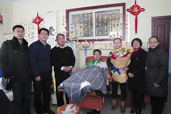 當(dāng)日上午,石大黨委副書記、副校長(zhǎng)韓尚峰,學(xué)生工作部(處)、地球物理學(xué)院、校醫(yī)院等相關(guān)單位負(fù)責(zé)人到空軍特色醫(yī)學(xué)中心看望慰問劉晨昱。中國(guó)造血干細(xì)胞捐獻(xiàn)者資料庫北京管理中心、昌平區(qū)紅十字會(huì)等單位相關(guān)領(lǐng)導(dǎo)也前往醫(yī)院表達(dá)對(duì)劉晨昱的關(guān)心和感謝,并為他頒發(fā)了榮譽(yù)證書和紀(jì)念銘牌。