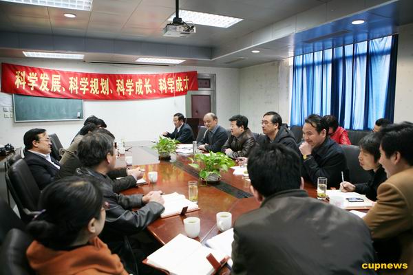 在資信學院,校長張來斌、黨委副書記雷玉江,以及人事處、教務處、研究生院、學工處的有關負責同志,與資信學院的黨政領導班子以及盆地中心、測井中心等中心、系的有關負責同志進行了座談。資信學院院長朱筱敏、分黨委書記陳小宏等匯報了資信學院目前師資隊伍發展狀況,以及在引進高層次拔尖人才、培養年青拔尖人才、創新團隊建設、推進國際化等方面的想法和打算,并就發展中存在的主要問題和遇到的重大難題與張來斌等交換了看法。