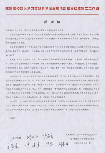 中國石油大學(北京)深入學習實踐科學發展觀活動領導小組及辦公室: