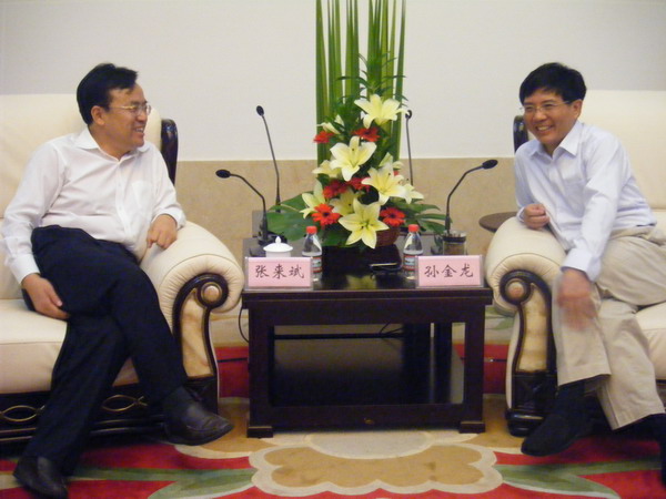 9月25日上午安徽省委常委、合肥市委書記孫金龍會(huì)見了張來斌校長、徐春明副校長一行。孫金龍就新能源領(lǐng)域技術(shù)應(yīng)用及循環(huán)經(jīng)濟(jì)發(fā)展與張校長進(jìn)行了深入交流。他說,安徽有著雄厚的工業(yè)產(chǎn)業(yè)化基礎(chǔ),合肥擁有紅四方、氯堿集團(tuán)等一批有著很好基礎(chǔ)的化工企業(yè)。此前,中鹽集團(tuán)整合該市化工企業(yè),整體遷往合肥循環(huán)經(jīng)濟(jì)示范園,這是實(shí)現(xiàn)企業(yè)規(guī)模擴(kuò)張、產(chǎn)業(yè)轉(zhuǎn)型升級(jí)的一大發(fā)展機(jī)遇,希望中國石油大學(xué)(北京)充分發(fā)揮自身優(yōu)勢(shì),把先進(jìn)的技術(shù)運(yùn)用到合肥,共同推進(jìn)循環(huán)經(jīng)濟(jì)示范園的建設(shè),進(jìn)一步加速合肥新型工業(yè)化發(fā)展步伐。
