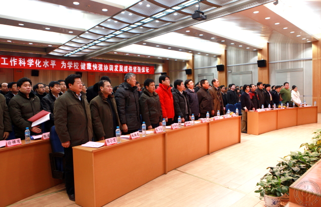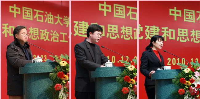 校黨委書記蔣慶哲做了題為“不斷提高學校黨建和思想政治工作科學化水平,為建設石油石化學科領域世界一流研究型大學提供堅強保障”的大會報告,從黨的思想理論建設、領導班子和干部隊伍建設、基層黨組織建設和黨員隊伍建設、黨風廉政建設、大學生思想政治工作、和諧校園建設等方面,對“十一五”期間學校黨建和思想政治工作做了全面的回顧,總結了五年來所取得的主要成績與經驗。