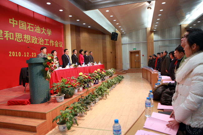 12月23日下午,中國石油大學黨建和思想政治工作會議在翠宮報告廳隆重召開。校領導蔣慶哲、張來斌、吳小林、剛文哲、雷玉江、龐雄奇、張士誠出席會議,校黨委委員、校紀委委員、學校第九次黨代會代表、科級以上干部、教工支部書記、二級部門工會主席、黨群部門工作人員、學生工作管理干部、黨務秘書共284人參加了會議。會議由校長張來斌主持。