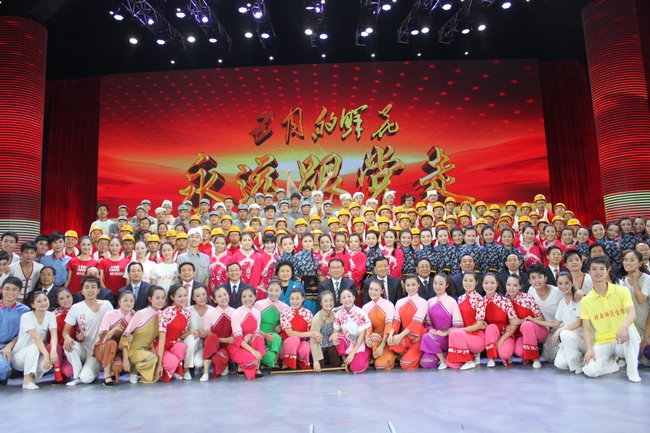 李長(zhǎng)春等領(lǐng)導(dǎo)人與演職人員合影