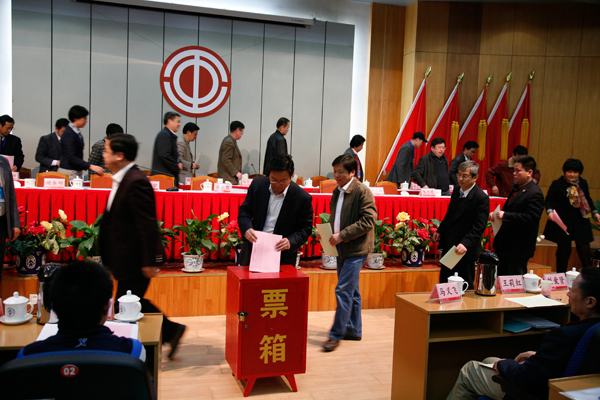 會議首先以舉手表決的形式,通過了大會選舉辦法,第五屆工會委員會委員、工會經(jīng)費審查委員會委員候選人名單,以及總監(jiān)票人、監(jiān)票人、總計票人、計票人名單。最后,在總監(jiān)票人徐樟有的主持下,進行了大會選舉。