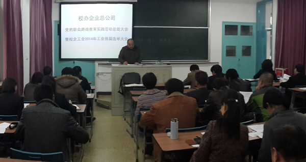 3月27日下午,校辦企業(yè)總公司在一教302教室召開黨的群眾路線教育實踐活動總結(jié)大會,校辦企業(yè)總公司全體在編職工及總公司企業(yè)編制職工參加了會議,會議由校企直屬黨支部書記張珣主持。