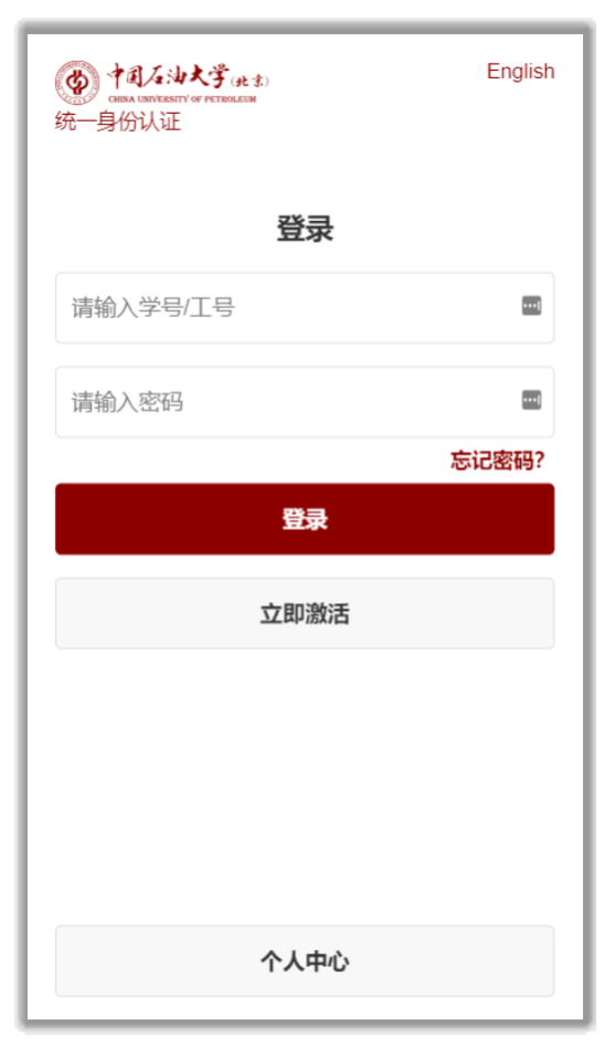 1、訪問https://sso.cup.edu.cn,點擊“立即激活”進入賬號注冊頁面。