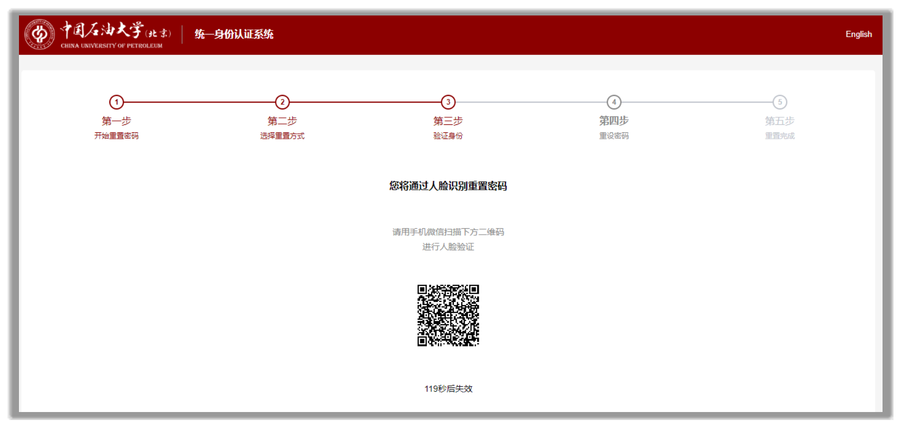 注:若使用安卓手機通過刷臉進行密碼重置,請在微信文件傳輸助手中發送“https://sso.cup.edu.cn”,點擊發送的鏈接訪問登錄頁,然后點擊“忘記密碼”。