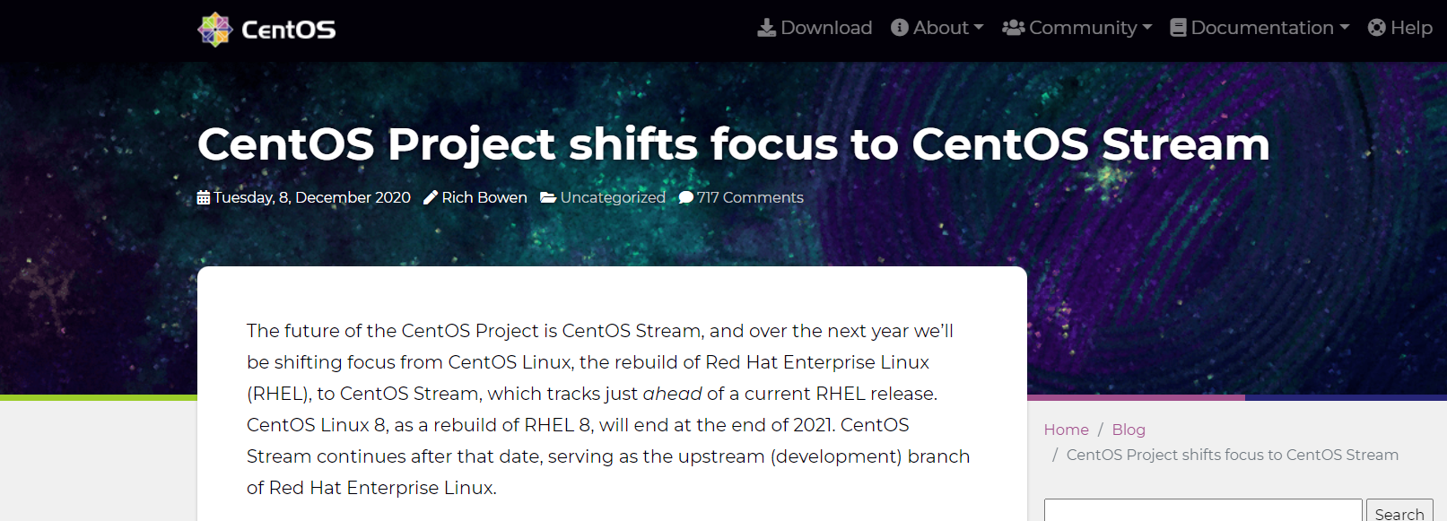 2020年12月8日,CentOS官網發布通知CentOS Linux 8于2021 年12月31日停止服務。CentOS Linux 7將于2024年6月30日停止服務。CentOS Stream 為CentOSLinux 8結束之后,作為Red Hat Enterprise Linux 的上游(開發)分支,其可靠性、穩定性肯定不及CentOS Linux,不建議使用在生產環境中。