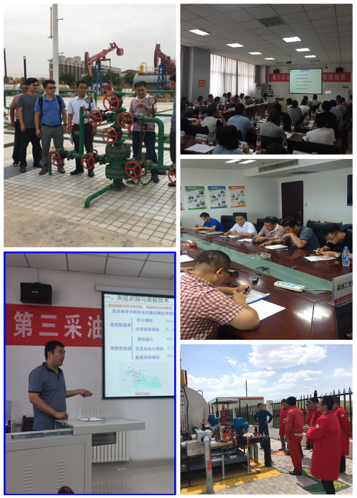 實(shí)踐活動(dòng)分為專(zhuān)題講座、交流座談、現(xiàn)場(chǎng)參觀(guān)等形式。在采油三廠(chǎng)銀川基地,石油工程學(xué)院馬新仿、薛永超、曹仁義和趙曉亮四位老師分別就自己的研究方向?yàn)?/span>長(zhǎng)慶油田采油三廠(chǎng)首期專(zhuān)業(yè)技術(shù)培訓(xùn)班學(xué)員做了專(zhuān)題講座,并進(jìn)行了深入的技術(shù)交流;實(shí)踐團(tuán)赴采油工藝研究所和地質(zhì)研究所開(kāi)展了技術(shù)交流。座談中,兩所相關(guān)負(fù)責(zé)人介紹了采油三廠(chǎng)目前生產(chǎn)過(guò)程中存在的技術(shù)瓶頸和技術(shù)需求,介紹了校企在科研工作方面的合作情況,提出了企校雙方在科研攻關(guān)、科技創(chuàng)新等方面開(kāi)展合作交流的需求。實(shí)踐團(tuán)教師圍繞各自研究領(lǐng)域和企業(yè)技術(shù)人員進(jìn)行了深入交流,并就部分技術(shù)需求和攻關(guān)難點(diǎn)達(dá)成了初步合作意向;在中石油油田生產(chǎn)技能培訓(xùn)中心和紅井子作業(yè)區(qū),實(shí)踐團(tuán)參觀(guān)學(xué)習(xí)了采油三廠(chǎng)的油田生產(chǎn)實(shí)訓(xùn)系統(tǒng),實(shí)地考察了姬四聯(lián)合站、增壓點(diǎn)等,了解了現(xiàn)場(chǎng)一線(xiàn)的生產(chǎn)狀況和技術(shù)需求。