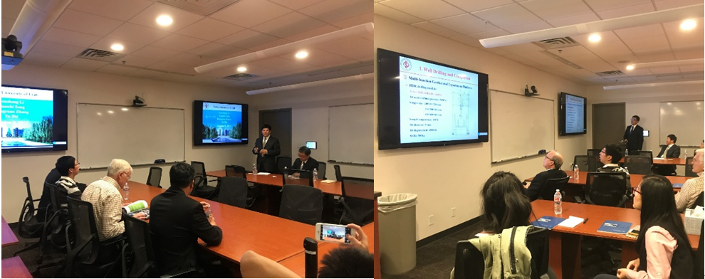 6日,李根生院士一行受邀訪問(wèn)了美國(guó)猶他大學(xué),分別與猶他大學(xué)副校長(zhǎng)Prof. Andrew S. Weyrich、工程學(xué)院院長(zhǎng)Prof. Richard B. Brown、能源與地質(zhì)研究院院長(zhǎng)Prof. Raymond A. Levey、化學(xué)工程系主任Prof. Milind D. Deo等進(jìn)行了深入交流,充分了解了猶他大學(xué)的辦學(xué)情況和科研工作,李根生院士詳細(xì)介紹了我校的院系組成、師資力量、國(guó)際合作及科學(xué)研究的相關(guān)情況,宋先知副教授受邀做了題為:“Research and Application of Water Jet Technology in Drilling and Completion”和“Research Progress in Geothermal Well Drilling, Completion and Production”的學(xué)術(shù)報(bào)告。訪問(wèn)期間,雙方就人才培養(yǎng)、科技合作、學(xué)術(shù)交流與聯(lián)合實(shí)驗(yàn)室等進(jìn)行了探討并達(dá)成了合作意向。最后,李根生院士探望了在猶他大學(xué)訪問(wèn)學(xué)習(xí)的石大師生,了解了他們的學(xué)習(xí)、科研和生活情況,鼓勵(lì)大家努力工作,取得豐碩的科研成果。