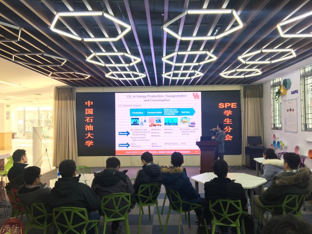 12月15日,SPE學(xué)生分會邀請美國休斯頓大學(xué)石油工程系博士后研究員陳培拉博士來校,在國際視野中心為廣大師生做了題為《CO2驅(qū)油技術(shù)的歷史、現(xiàn)狀和技術(shù)挑戰(zhàn)》的學(xué)術(shù)報告。