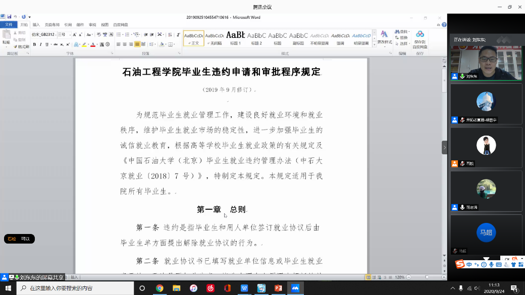 為給學院全體畢業(yè)生的就業(yè)工作保駕護航,解答學生疑惑,9月24日上午10點,石油工程學院2021屆畢業(yè)生就業(yè)動員會通過騰訊會議線上舉行,同時通過Bilibili平臺同步直播。就業(yè)指導中心范曉靜老師、石油工程學院團委書記劉東東以及2018級研究生輔導員王松杰出席此次大會,學院全體本碩博畢業(yè)生共計400余人參會。會議由王松杰主持。