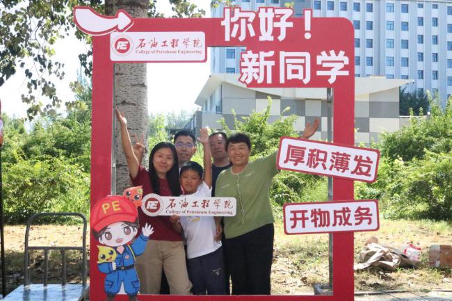 迎新現場設有簽名墻、打卡點等互動區域,新生與家長紛紛駐足合影,記錄下踏入石工學院的“第一刻”。