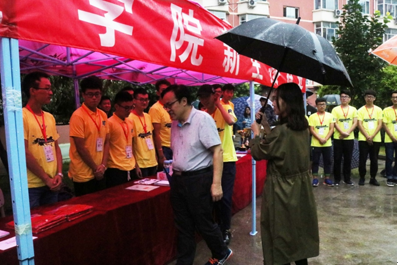 27日下午,校長張來斌對正在迎新的全體工作人員表示慰問。“永遠積極向上,永遠熱淚盈眶”是石油工程學院傳承已久的精神,風中雨中,他們依然堅守在自己的工作崗位上。