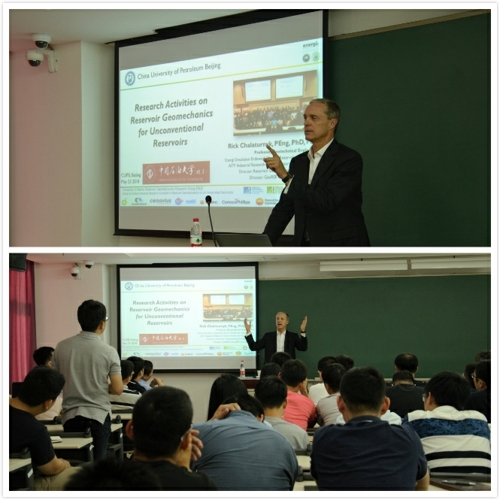 2018年5月23日,由中國(guó)石油大學(xué)(北京)石油工程學(xué)院、油氣資源與探測(cè)國(guó)家重點(diǎn)實(shí)驗(yàn)室主辦的“蟒山講壇——石工分講壇”第六期在第四教學(xué)樓201教室成功舉辦。阿爾伯塔大學(xué)巖石力學(xué)系教授、加拿大工程院院士Richard J. Chalaturnyk應(yīng)邀作為本期講壇的主講嘉賓。Richard教授作了題為“Research Activities on Reservoir Geomechanics for Unconventional Reservoirs”的學(xué)術(shù)講座。講座由石油工程學(xué)院院長(zhǎng)張廣清教授主持,石工學(xué)院相關(guān)研究方向的教師和學(xué)生60余人參與交流。