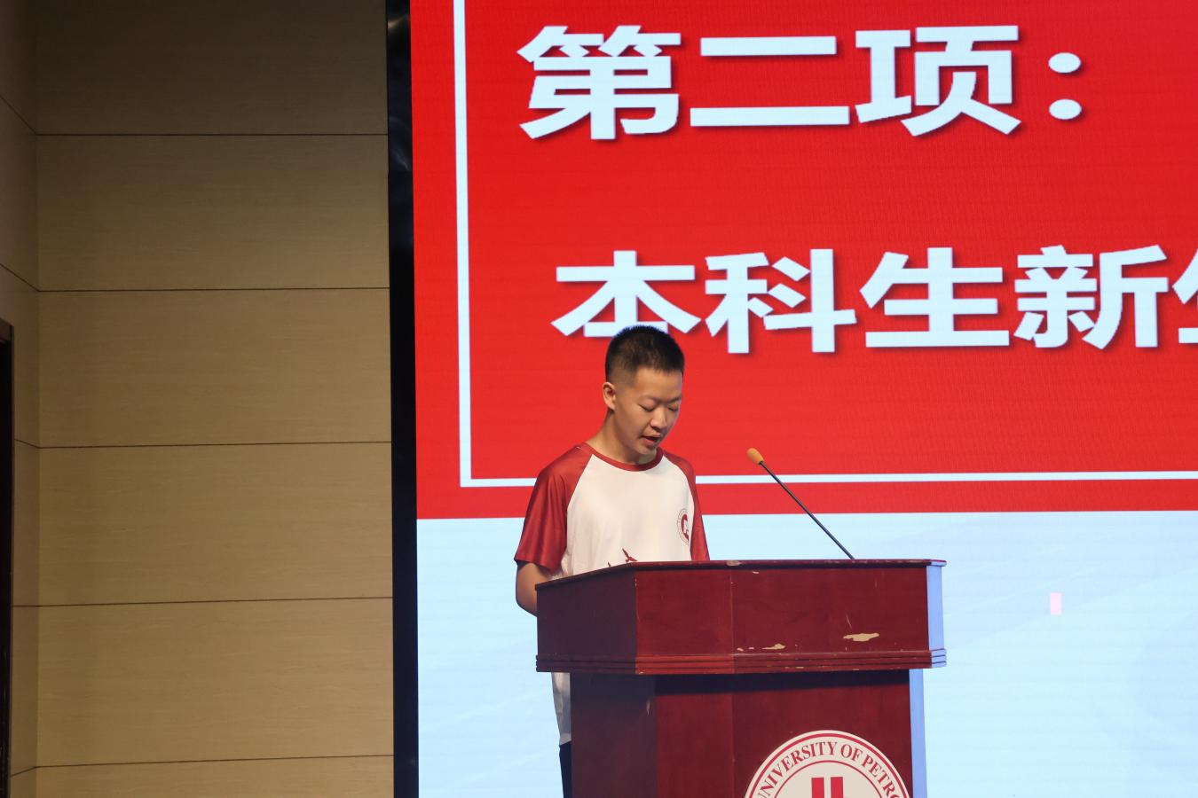 2025級本科新生張淞晨作為新生代表發(fā)言。他從自己與石油的不解之緣講起,表示自己作為一名光榮的中石大人,將做到快速適應(yīng)、勤學篤行、胸懷家國,在專業(yè)學習中錘煉本領(lǐng),在實踐探索中增長才干,學有所成、不負韶華。