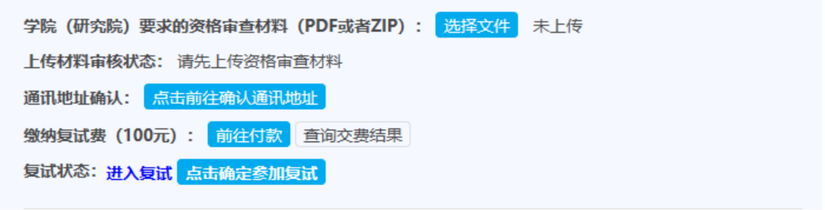 所有進入復試的考生均須在2024年3月22日中午12:00點前,通過我校研究生招生管理信息系統(http://gmss.cup.edu.cn/logon)選擇“碩士研究生復試錄取”欄目完成“復試確認(資格審查材料上傳、繳費)”、“意向導師選擇”及時關注學校及學院復試安排,未按規定方式、時間復試的視為自動放棄復試資格。