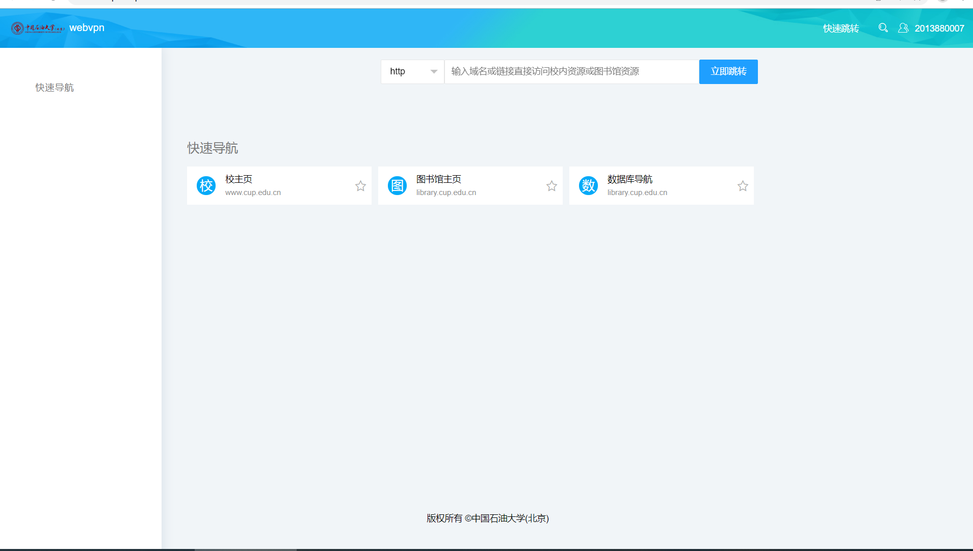 1.在瀏覽器中輸入https://webvpn.cup.edu.cn,進入登錄頁面。