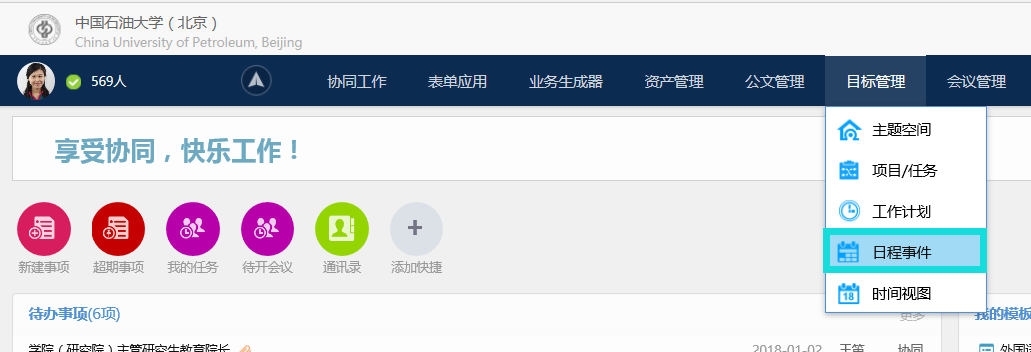 新建日程事件點(diǎn)擊一級菜單【目標(biāo)管理】 --【日程事件】,進(jìn)入日程事件的操作界面。
