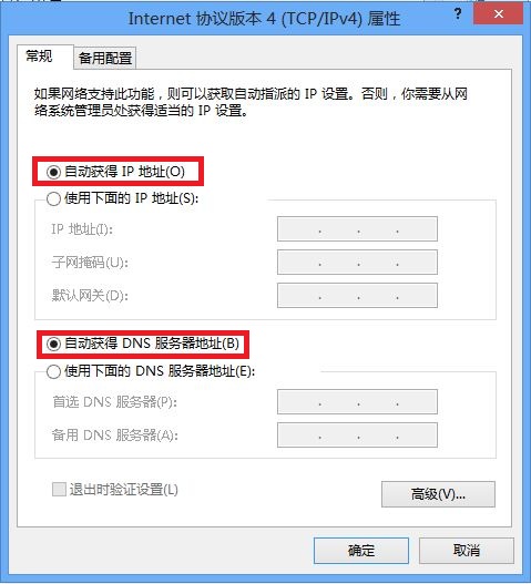 分別選擇“Internet 協(xié)議版本 4 ”和“Internet 協(xié)議版本 6”,選擇自動獲取IP地址和自動獲取DNS服務(wù)器地址,確定即可。以“Internet 協(xié)議版本 4”為例,如下圖所示: