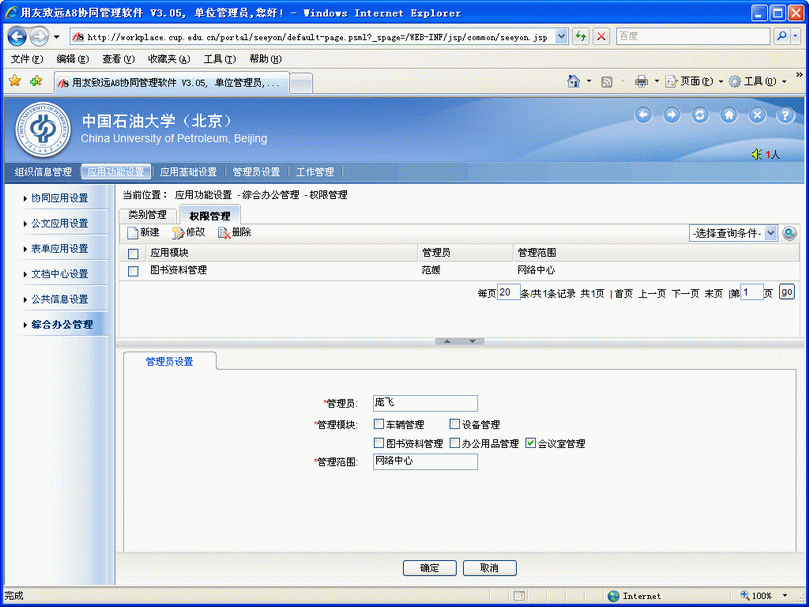 圖1.單位管理員新建會議室管理權限并指派會議室管理員