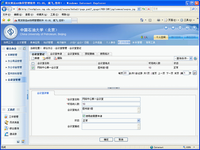 會議室管理員首先需要對會議室資源信息進行登記(如下圖)