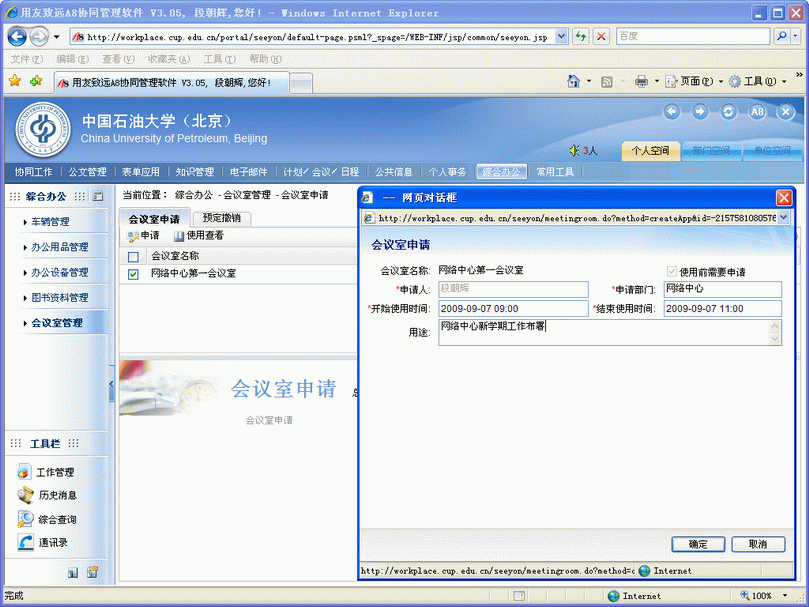 圖3 會議主持提交會議室申請