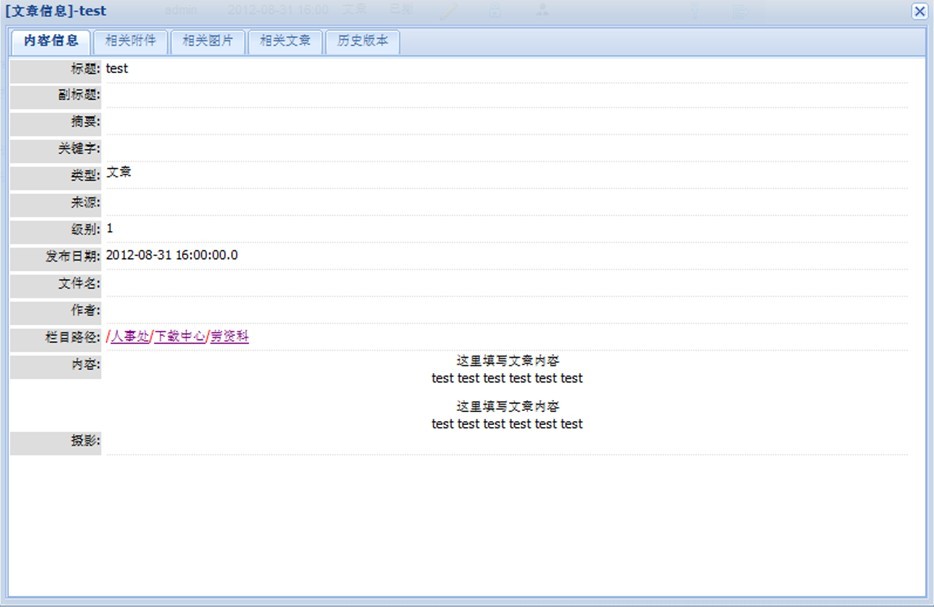 - 2012-08-01 在CMS6.1系統(tǒng)中新建和發(fā)布文章基本流程