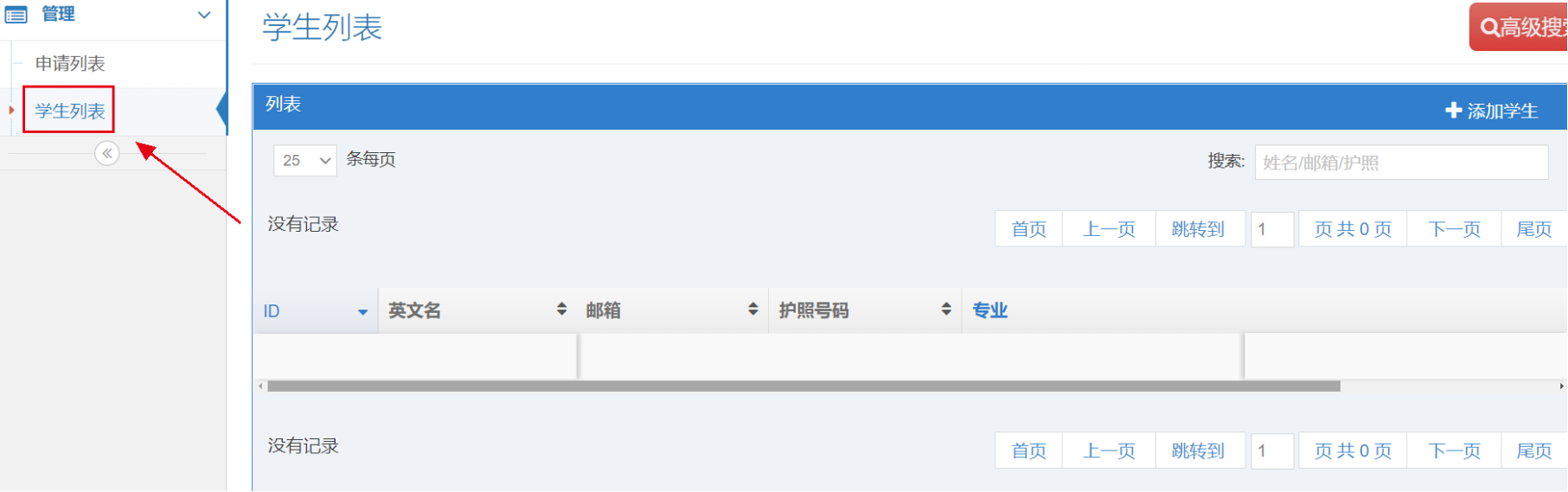 3. Click "+Add Student” to create a new student application