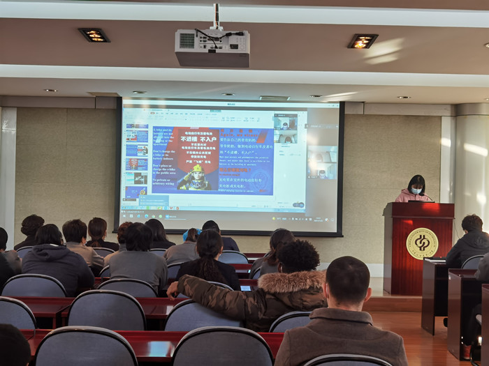 To enhance fire safety awareness, improve self-rescue prevention capabilities, and create a fire safety cultural atmosphere, on November 9, 2021, the day of National Fire Safety Day, the College of International Education specially invited Ma Xiaowei, the fighting team leader of Yongan Rescue Station, to held a online bilingual lecture on "Preventing Electric Bicycle and Battery Fire Hazards" for our teachers, students and property staff.