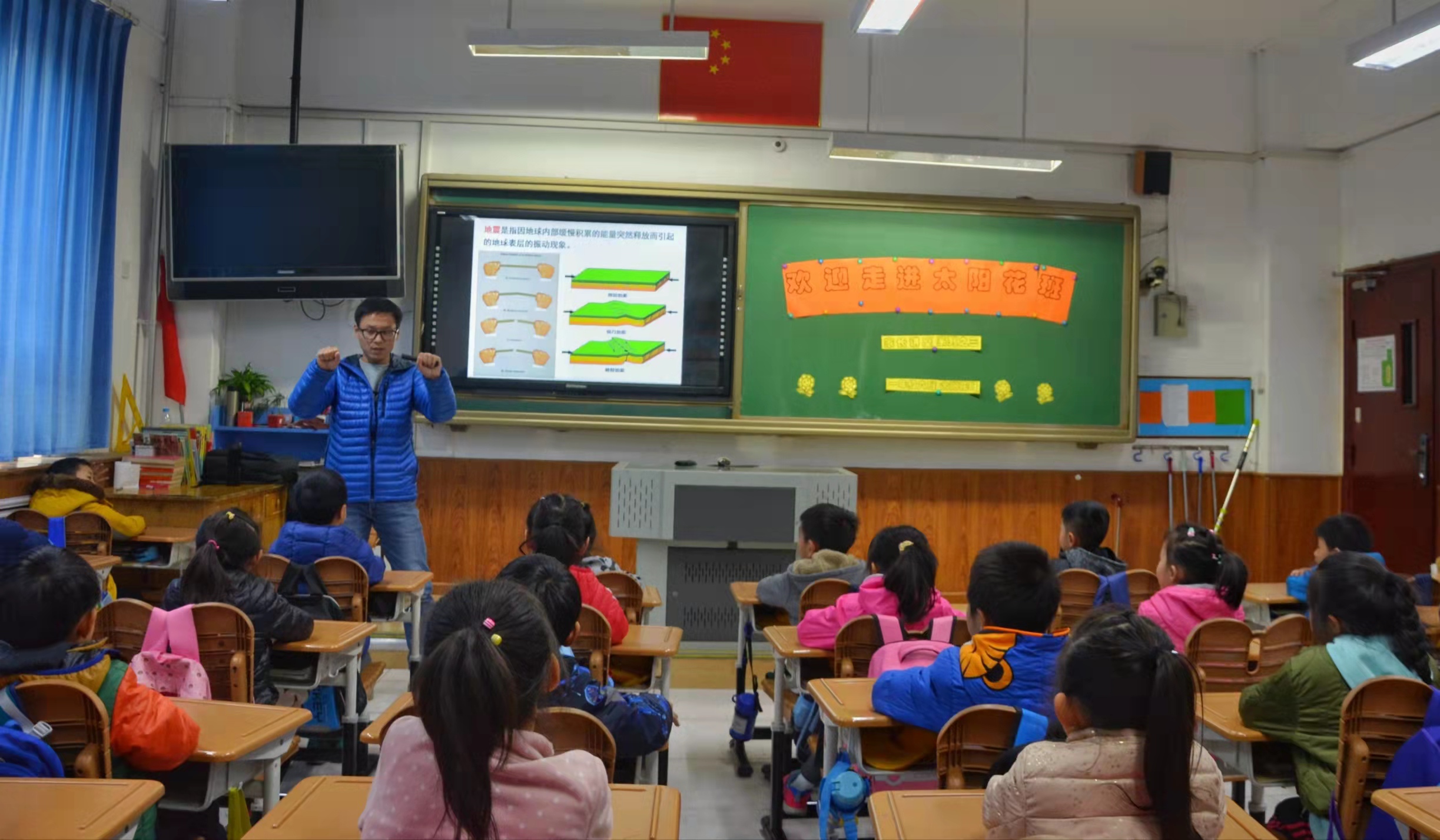 “我們能夠生活在這美麗的藍色地球上,是無比幸福的,因為這里有高山、有海洋、有陽光、有鮮花,還有可愛的小動物們。但是,地球經過幾十億年的演化,有著復雜的地質結構,它有時候也會發泄“小脾氣”——地震。你們了解地震嗎?我們又該如何在地震來臨時保護好自己呢?”講堂伊始拋出兩個問題,讓學生們對此產生了濃厚的興趣及引起積極的思考。接著羅澤熙爸爸用簡單的語言及生動的視頻詮釋了什么是地震?地球就像是一個能量球,它的內部緩慢積累的能量突然釋放就會引起地球表面的震動,震源深度淺、震級高的地震會給人類帶來很大的傷害。