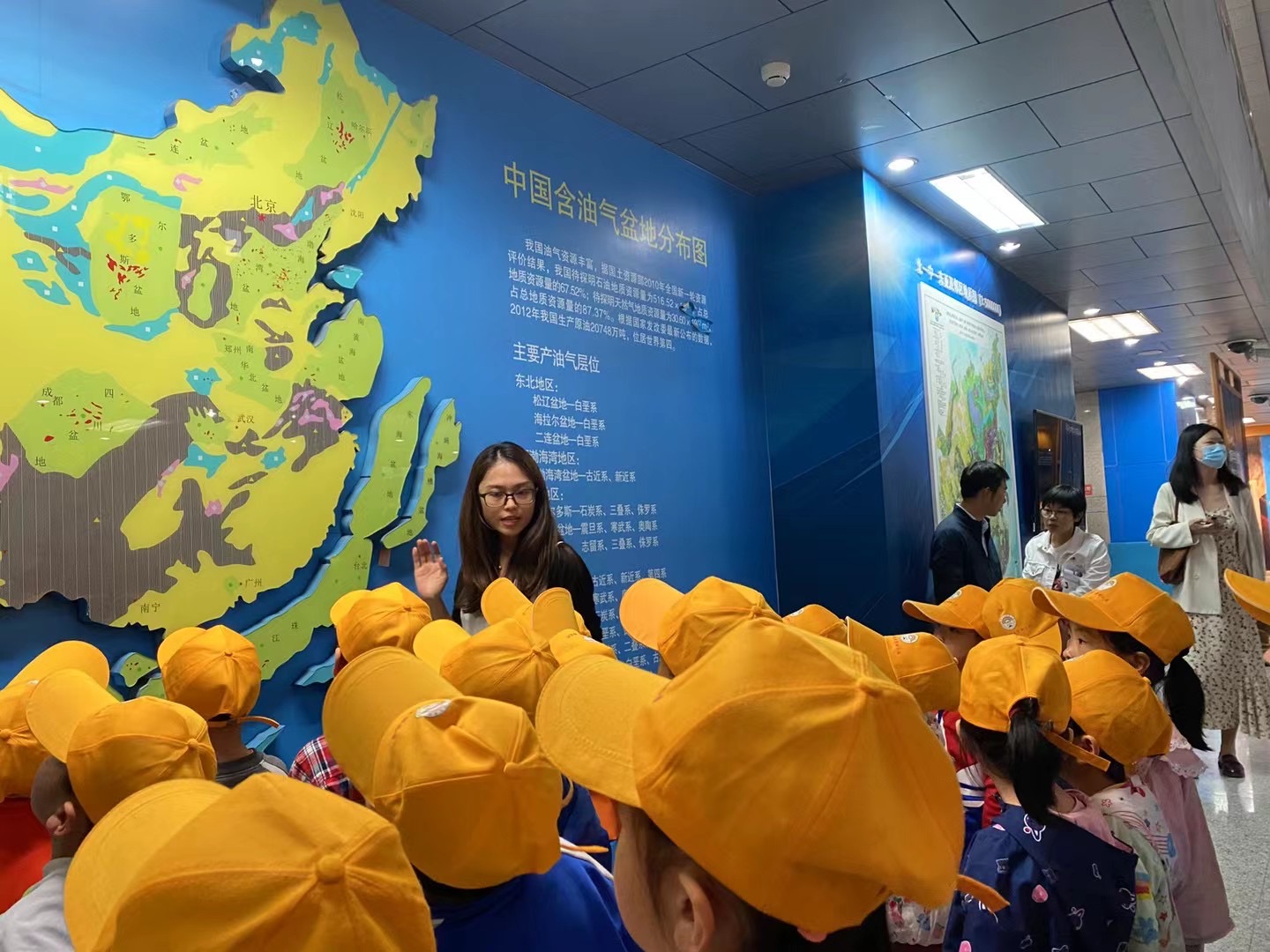 首先,孩子們參觀了地球科學博物館。專業人員向孩子們講解了地球的概況、礦物與巖石的基本特征以及石油的生成與運移,展示了精美的標本和化石。孩子們對化石尤為感興趣,爭先恐后地向講解老師提出問題,共同探討化石形成的原因和過程。
