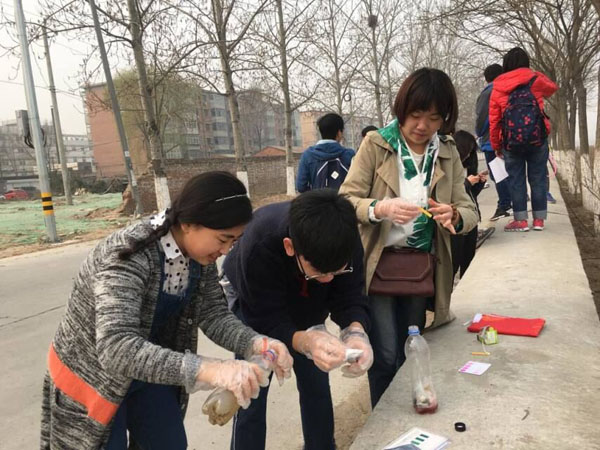 2017年3月19日,蒲公英青協攜手地學院輔導員及先鋒黨支部赴北沙河開展活動。活動以水資源知識競賽的形式拉開帷幕,在檢測水質、采訪群眾、清理沿河垃圾等各環節中,志愿者各盡其責,積極參與,充分展現當代大學生科學環保的節水理念及敦本務實的精神風貌。