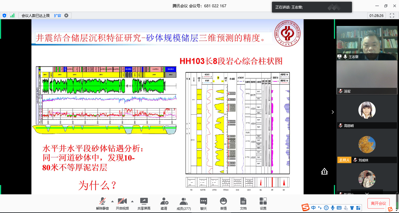 2020年4月29日晚,地球科學(xué)學(xué)院油氣勘探與開(kāi)發(fā)地質(zhì)系通過(guò)騰訊會(huì)議以線上學(xué)術(shù)交流的形式,成功舉辦了第三十八期的學(xué)術(shù)沙龍。本期學(xué)術(shù)沙龍以“大型致密油氣藏評(píng)價(jià)與開(kāi)發(fā)一體化關(guān)鍵技術(shù)”為主題,由地球科學(xué)學(xué)院王志章教授主講、劉成林教授主持,約280位校內(nèi)外師生及專(zhuān)家共同參加了此次學(xué)術(shù)活動(dòng)。