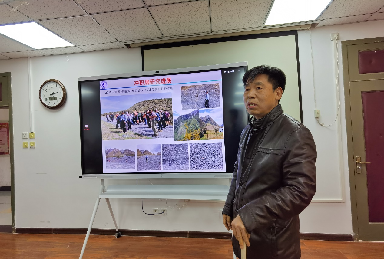 研討會共邀請了4位報告人,他們從不同角度對粗粒沉積研究現狀和未來發展進行了闡述。第一位報告人是本校油氣勘探與開發地質系的紀友亮教授,他結合在2015年新西蘭IAS國際會議中了解到的國際前沿動態,從沖積扇的地貌單元、分類和沉積模式等方面對沖積扇沉積進行了綜合論述,并以新疆西北緣的白楊河沖積扇為例,介紹了野外實測的成果和理論認識,為粗粒沉積教學和科研提供了全面的動態介紹。接下來,中國地質大學(北京)的李順利副教授介紹了野外實測方法,從野外踏勘的角度介紹了沖積扇、河流、扇三角洲等粗粒沉積的特征,并展示了位于青海烏蘭縣的黑馬河扇三角洲野外觀察結果,是實踐方法與科學研究相結合的好成果。第三位報告人是本校在讀博士生楊棵,他從“分支河流體系(DFS)”入手,介紹了其概念、基本特征、發展歷程、現代DFS沉積特點和古代DFS的識別與恢復,并對未來DFS研究發展進行了深入思考。最后一位報告人是本校地質學系的孫海濤副教授,他從油氣勘探角度介紹了塔里木盆地庫車坳陷白堊系礫巖的識別技術和分布規律,提出了基于露頭和巖心資料、利用三維電法資料識別礫石層的技術手段,該方法的應用有效地增強了對礫石層厚度及深部圈閉面積的預測精度,提高了鉆井進度,降低了施工成本。