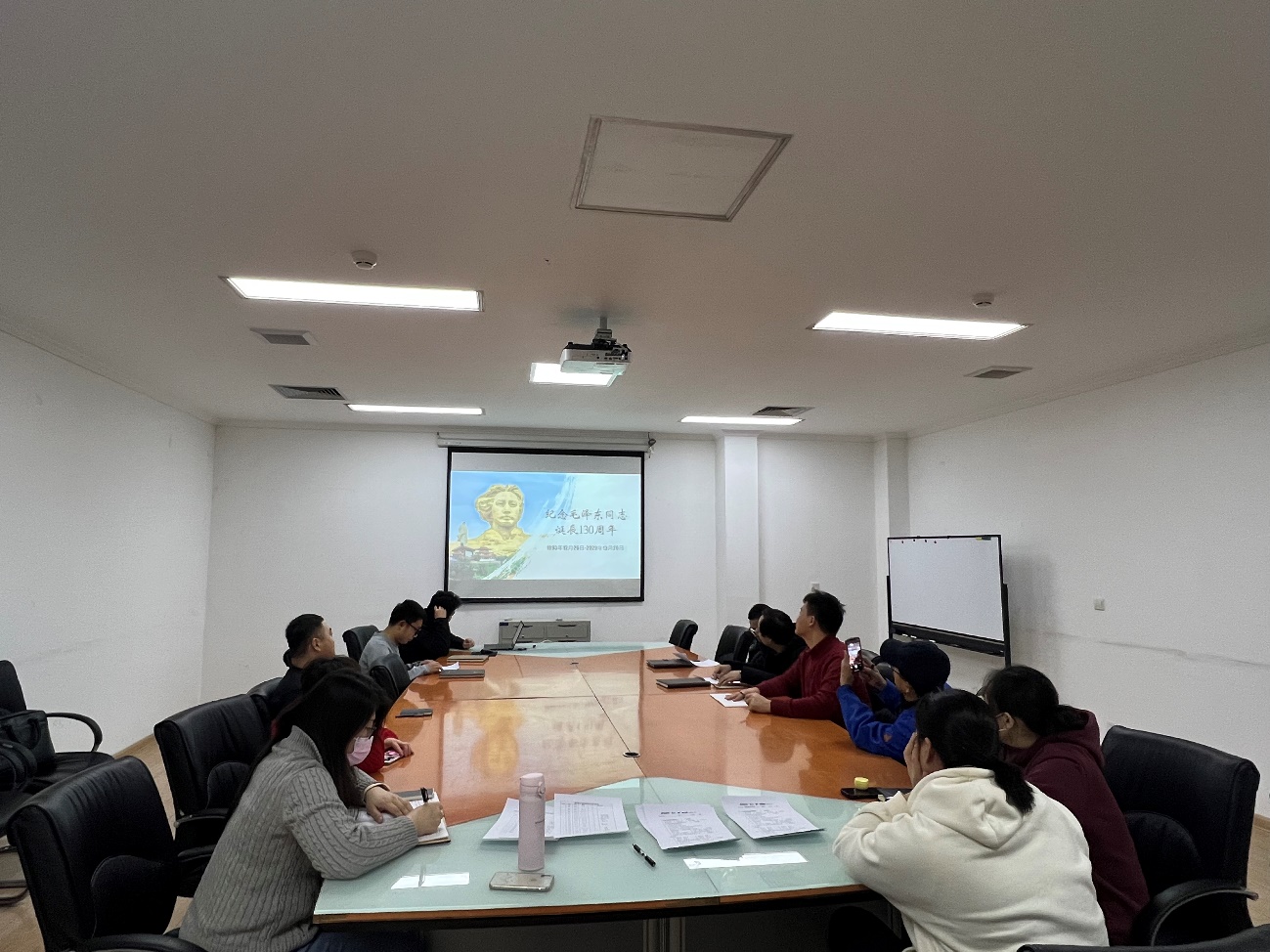 首先,趙益達同志帶領教職工進行政治理論學習,內容為習近平在紀念毛澤東同志誕辰130周年座談會上的講話。包括毛澤東同志生平、毛澤東同志做出的歷史貢獻、毛澤東同志開創馬克思主義中國化的具體措施、毛澤東思想的靈魂以及如何繼續推進強國建設、民族復興。通過學習各位老師表示毛澤東同志為中華民族、中國人民建立了不可磨滅的歷史貢獻,毛澤東思想也具有很高的歷史地位、科學價值以及指導意義,我們要把毛澤東同志開創的事業繼續推進,以中國式現代化全面推進強國建設、民族復興偉業。