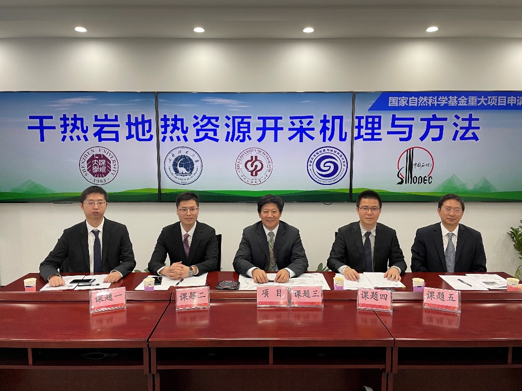 “干熱巖地熱資源開采機理與方法”重大項目匯聚了我國干熱巖地熱資源開采領域的優(yōu)勢研究力量,由中國石油大學(北京)作為牽頭依托單位,聯(lián)合了深圳大學、成都理工大學、中科院地質(zhì)與地球物理研究所和中石化石油工程技術(shù)研究院等單位共同承擔,多學科交叉、產(chǎn)學研融合、優(yōu)勢互補。實驗室負責五個課題中的兩個課題,依托地熱研究中心的骨干力量和研究條件開展研究,研究團隊有來自石油工程學院、地球科學學院、機械與儲運工程學院等地熱相關(guān)的科研力量。