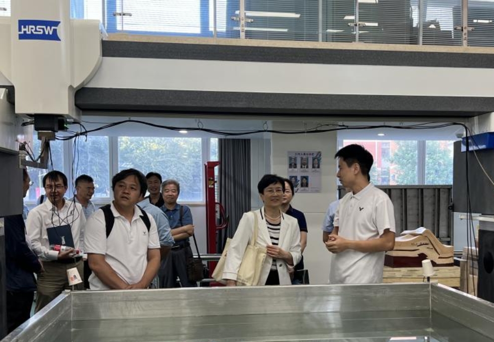 隨后,底院士參觀了階梯教室的地震物理模型實(shí)驗(yàn)室、生排烴模擬實(shí)驗(yàn)室、井孔地球物理實(shí)驗(yàn)室、巖石力學(xué)實(shí)驗(yàn)室、沉積-地層物理模擬(水槽)實(shí)驗(yàn)室。在地震物理模擬實(shí)驗(yàn)室中,底院士觀摩了儀器的操作流程和實(shí)驗(yàn)現(xiàn)象,對(duì)模擬出的地質(zhì)模型的準(zhǔn)確度給與了高度評(píng)價(jià)。