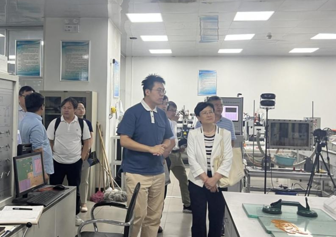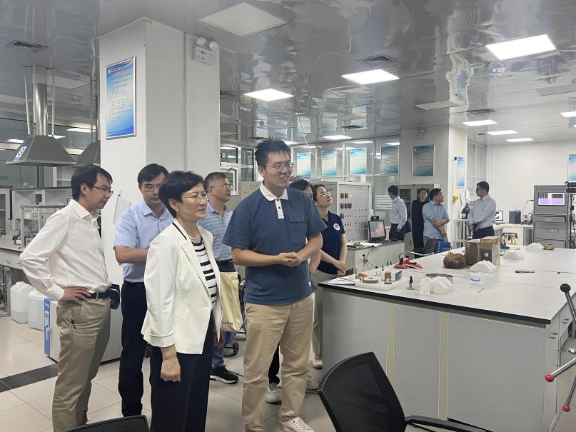 油氣成藏物理模擬實(shí)驗(yàn)室喬俊程老師負(fù)責(zé)講解。底院士就油氣成藏技術(shù)和實(shí)驗(yàn)設(shè)備運(yùn)行情況與喬老師進(jìn)行了交流。