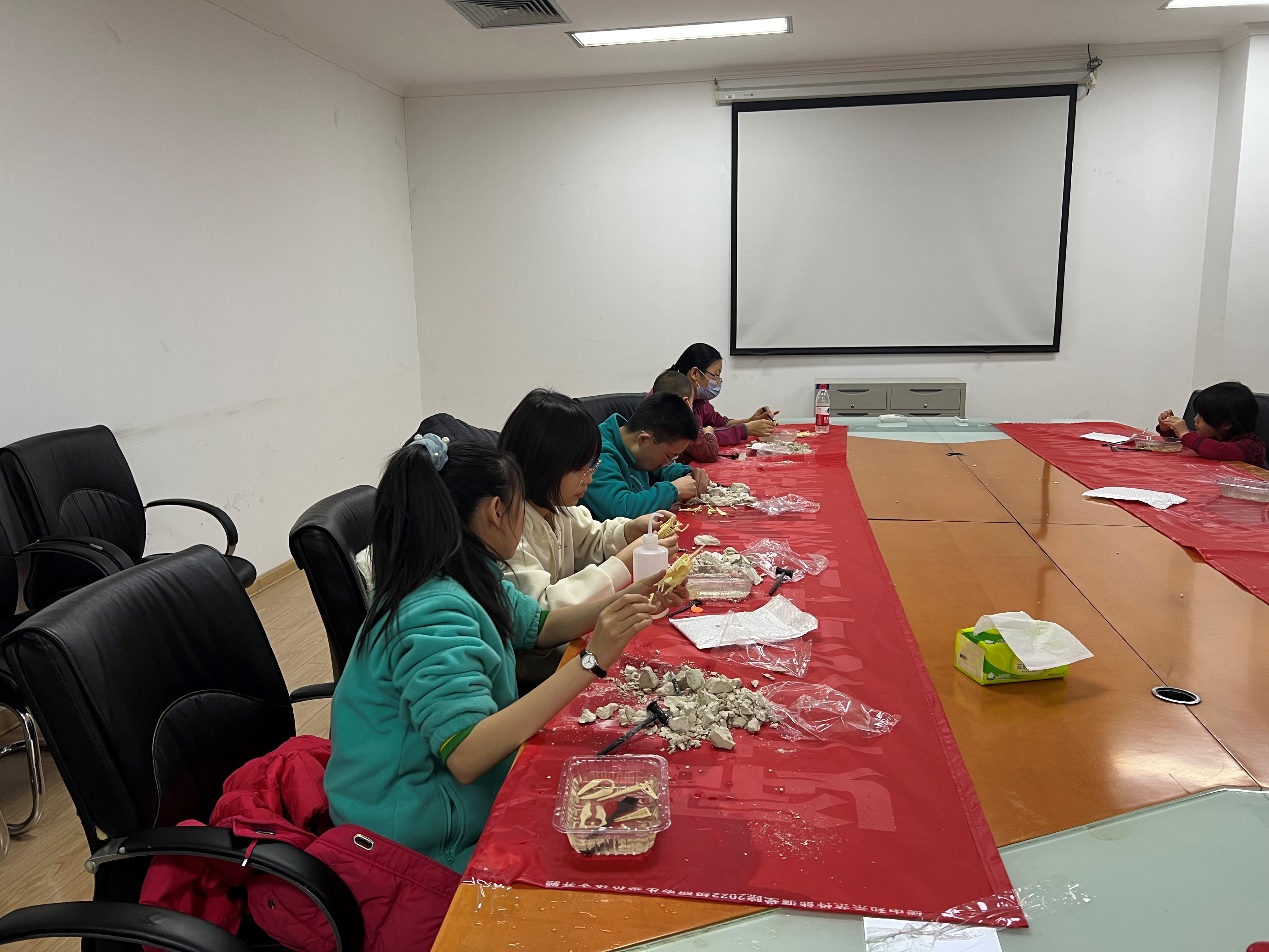 隨后是動手實踐環節,該環節模擬了地質學家發掘化石的過程。學生們被分為小組,每組負責“挖掘”不同類型的恐龍化石。通過這個過程,不僅鍛煉了孩子們的動手能力,還激發了他們對古生物學和地質學的興趣。